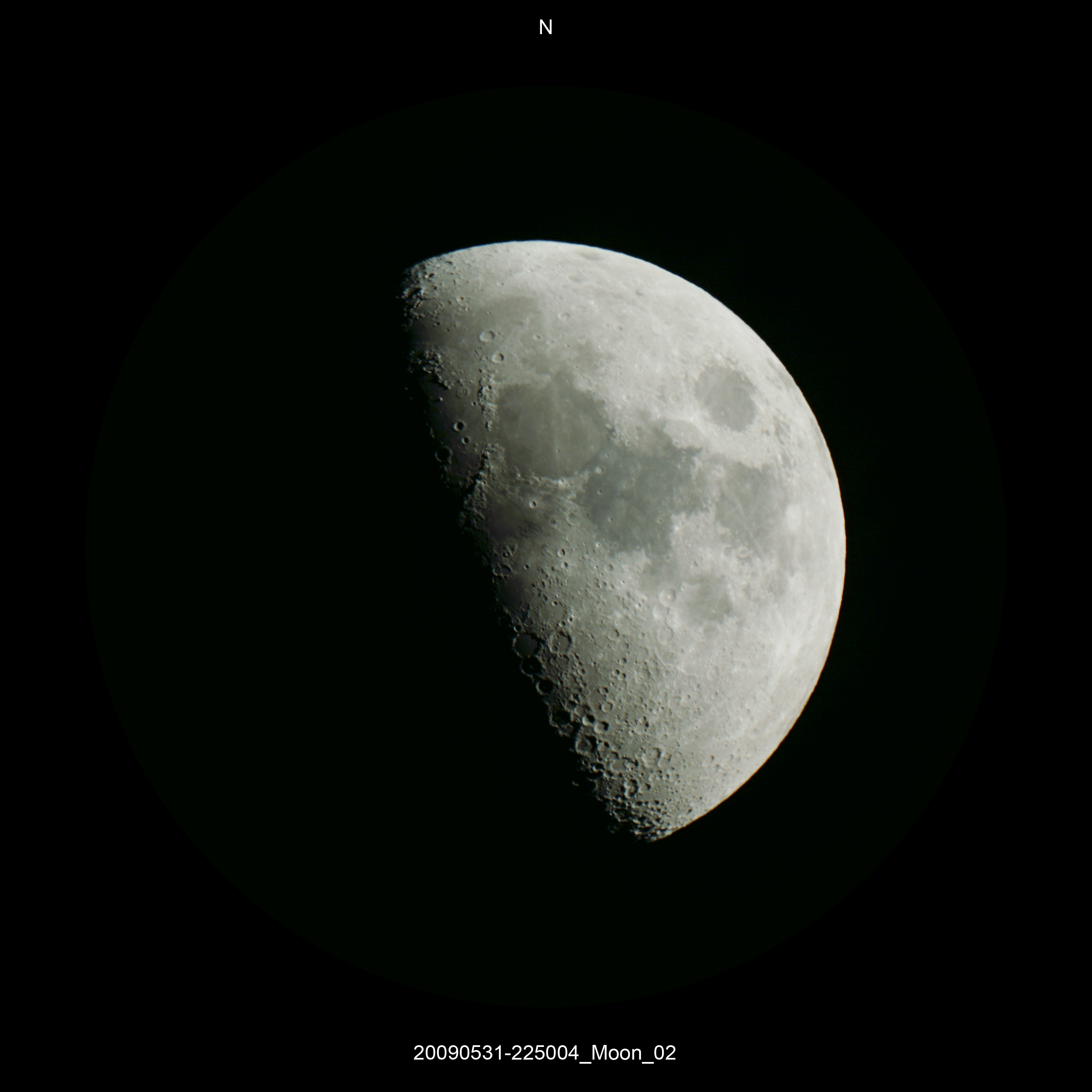 | 2 | 20090531-225004_Moon | Newton d 309,5 / af 1623 & Coma Corrector CANON-EOS5D (AFC-Filter) 100 ASA no add. filter 1 light-frame 1/160s Canon-RAW-Image, Adobe-PS-CS | 20090531-225004_Moon_02.JPG |