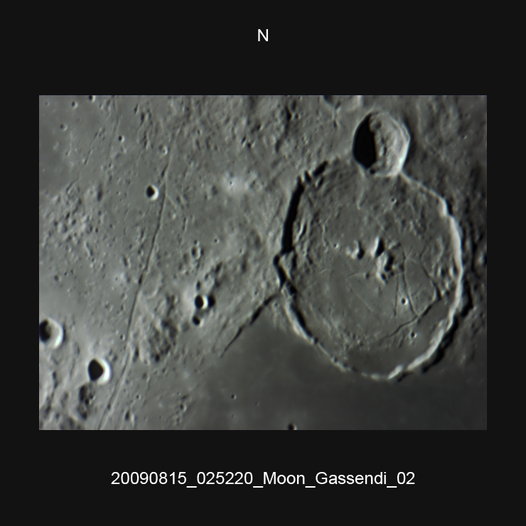 | 1 | 20090815_025220_Moon Gassendi | Newton d 309,5 / af 5780 (Barlow) TIS DBK 21AU04.AS UV-IR-Cut filter 640x480 AVI-1500 (30 frames/s) IC Capture.AS, AviStack, A-PS-CS | 20090815_025220_Moon_Gassendi_02.JPG |