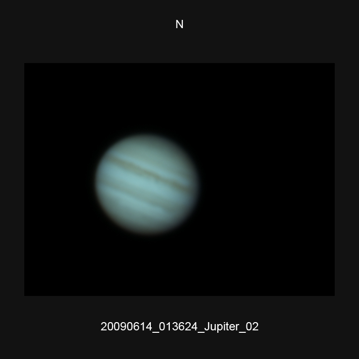 | 14 | 20090614_013624_Jupiter | Newton d 309,5 / af 5780 (Barlow) TIS DBK 21AU04.AS UV-IR-Cut filter 640x480 AVI-1500 (30 frames/s) IC Capture.AS, AviStack, A-PS-CS | 20090614_013624_Jupiter_02.JPG |