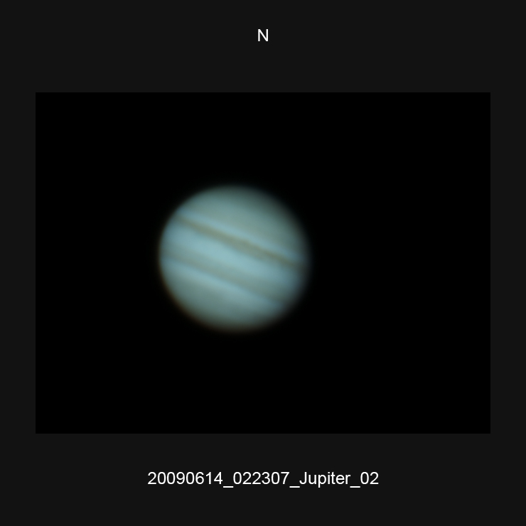 | 13 | 20090614_022307_Jupiter | Newton d 309,5 / af 5780 (Barlow) TIS DBK 21AU04.AS UV-IR-Cut filter 640x480 AVI-1500 (30 frames/s) IC Capture.AS, AviStack, A-PS-CS | 20090614_022307_Jupiter_02.JPG |