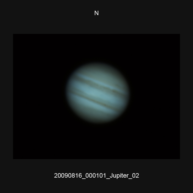 | 8 | 20090816_000101_Jupiter | Newton d 309,5 / af 5780 (Barlow) TIS DBK 21AU04.AS UV-IR-Cut filter 640x480 AVI-1500 (30 frames/s) IC Capture.AS, AviStack, A-PS-CS | 20090816_000101_Jupiter_02.JPG |