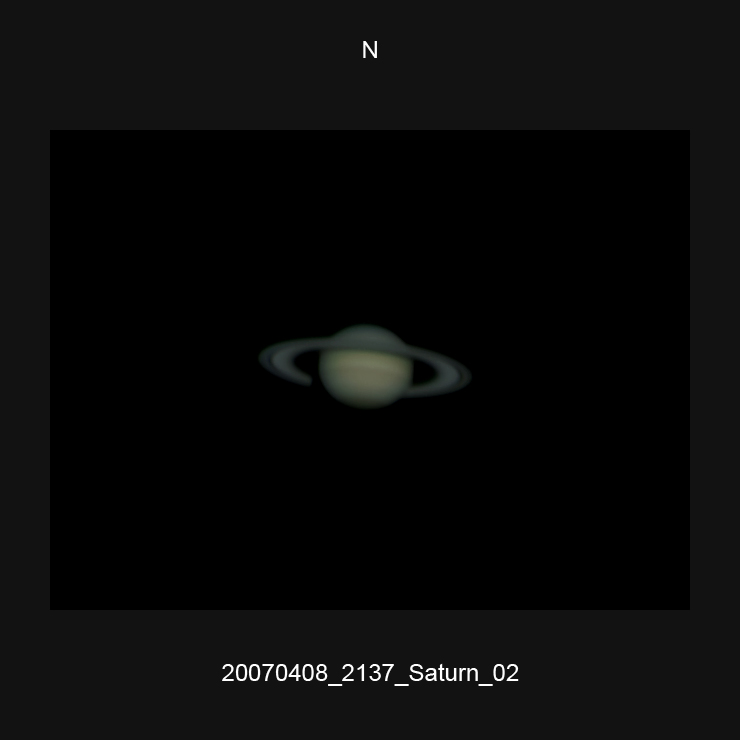 20070408_2137_Saturn_02.JPG -   Newton d 309,5 / af 5730 (Barlow) Phillips 740K UV-IR-Cut filter 640x480 AVI-800 (15 frames/s) Giotto, A-PS-CS3