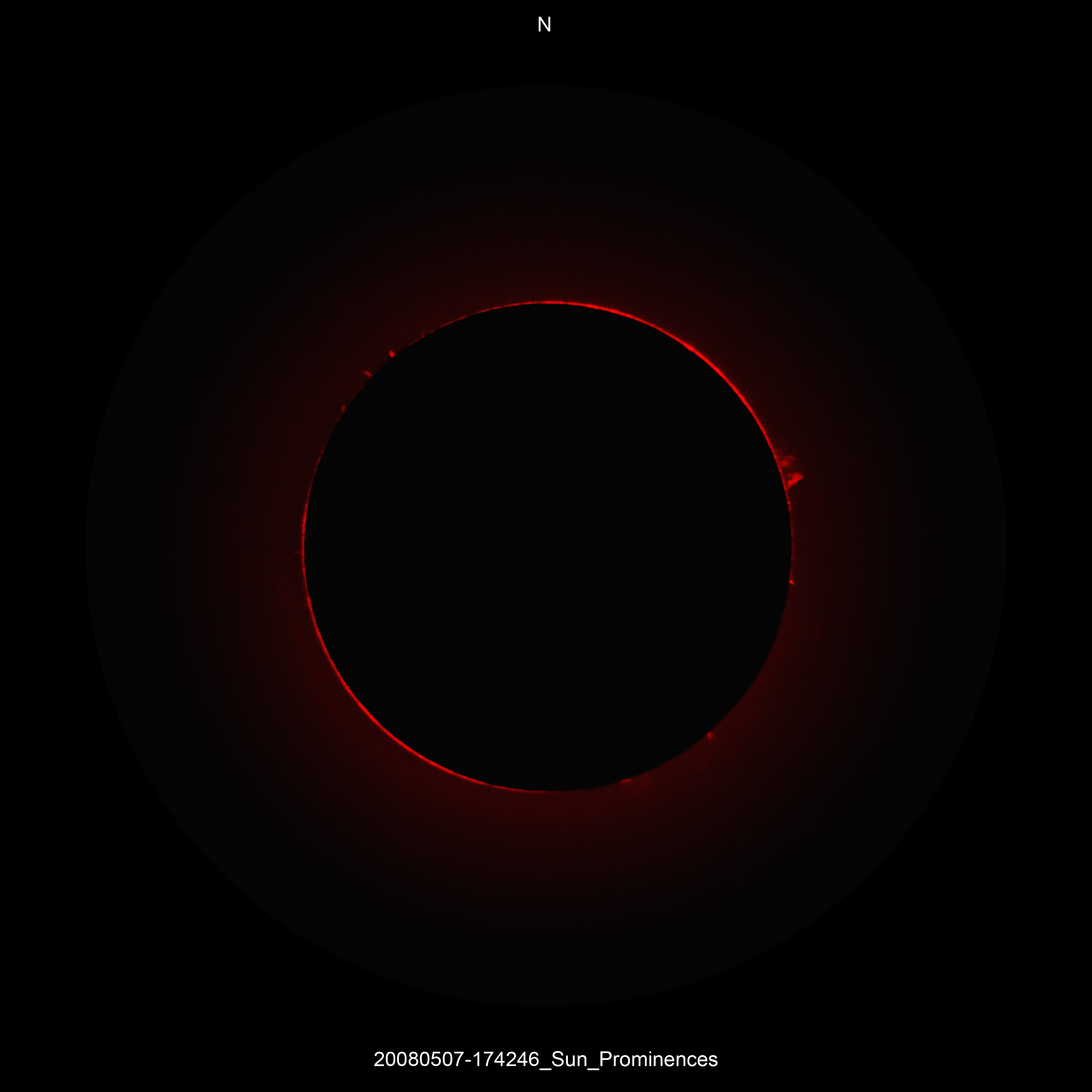 | 15 | 20080507-174246_Sun-Prominences | ED-Fh d 101,9 / af 1270 (Prom.Ext-Tube) CANON-EOS5D (AFC-Filter) 400 ASA Filter: Ha0,22nm, 2*RG630, UV-IR-CUT 1 light-frame 1/500s Canon-RAW-Image, Adobe-PS-CS3 | 20080507-174246_Sun-Prominences_02.jpg |