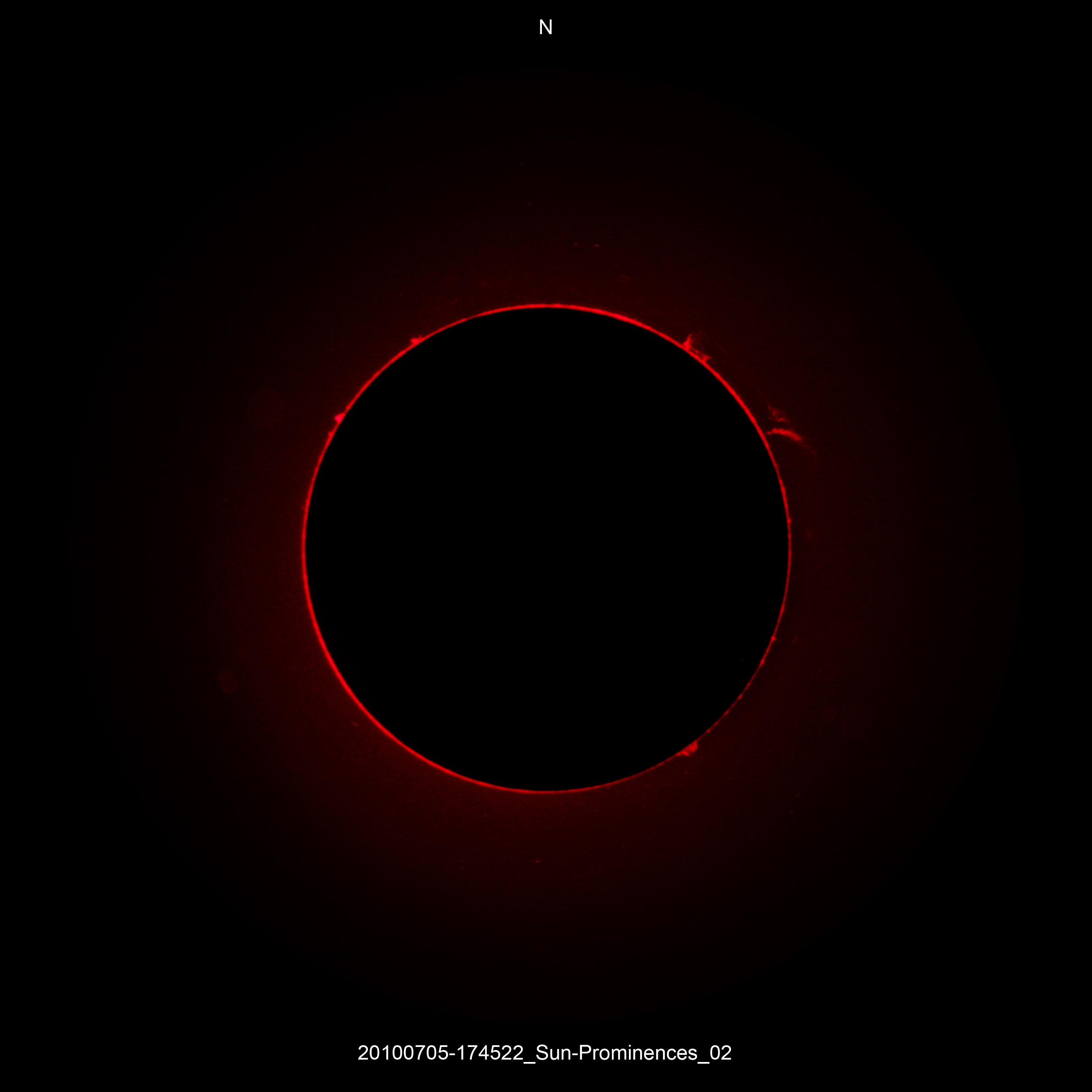 | 6 | 20100705-174522_Sun-Prominences | ED-Fh d 101,9 / af 1270 (Prom.Ext-Tube) CANON-EOS5D (AFC-Filter) 400 ASA Filter: Ha0,22nm, 2*RG630, UV-IR-CUT 1 light-frame 1/400s Canon-RAW-Image, Adobe-PS-CS Reflexes from Insects | 20100705-174522_Sun-Prominences_02.JPG |