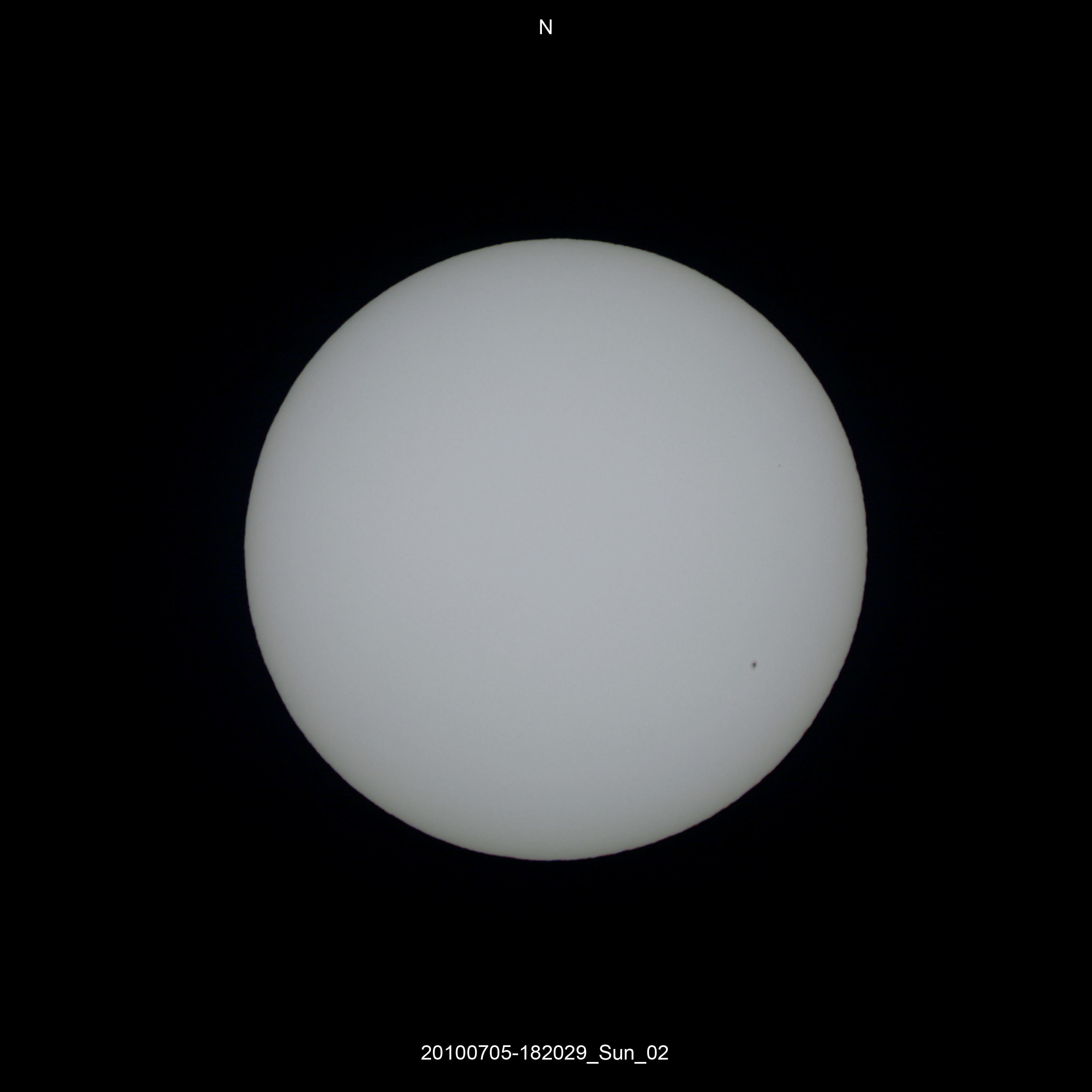 | 2 | 20100705-182029_Sun | Newton d 303,15 / af 1623 & Coma Corrector CANON-EOS5D (AFC-Filter) 200 ASA Baader Tape-3.8 Filter 1 light-frame 1/5000s Canon-RAW-Image, Adobe-PS-CS Low to Horizon | 20100705-182029_Sun_02.JPG |