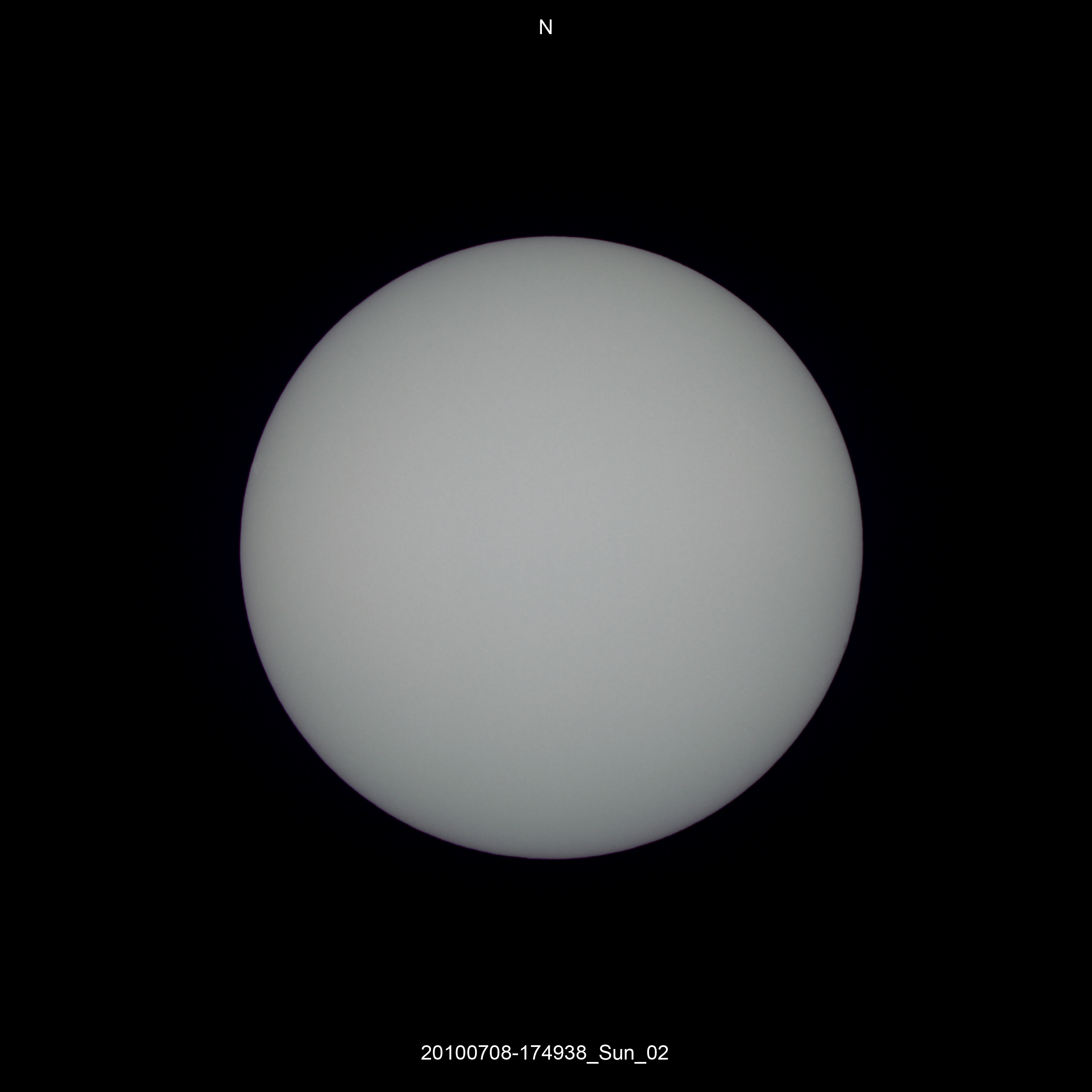 | 1 | 20100708-174938_Sun | Newton d 303,15 / af 1623 & Coma Corrector CANON-EOS5D (AFC-Filter) 160 ASA Baader Tape-3.8 Filter 1 light-frame 1/6400s Canon-RAW-Image, Adobe-PS-CS Low to Horizon | 20100708-174938_Sun_02.JPG |